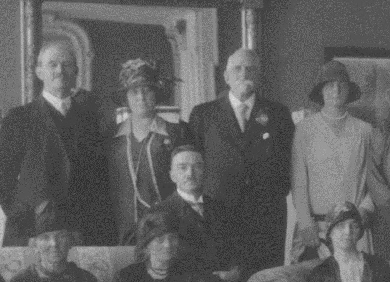 The couple married on 17th April 1913, and were registered in Uddingston, Bothwell (in western Lanarkshire near the Clyde). He was 26 and had been working as a brickwork salesman, living at the Scobbie family home “Beechworth” in Newarthill, a few km to the east. He was probably working for his father. Marion was 28 and had been working as a schoolmistress. Her family home was near Uddingston at the time, just to the west of Bellshill, in a detached house called “Rosepark” in Fallside, which is where they were married. It was a couple of months before David’s parents’ 35th wedding anniversary, and you can see the full photo (and a listing of his sibings’ BMD details) in the post on his family in 1913.