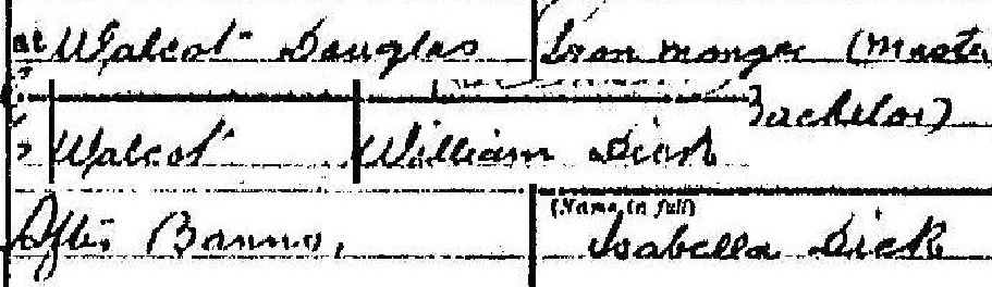 Finally, with Scobbie being such an unusual surname, I was surprised to find there have been three Scobbie+Dick marriages. I don’t know of connections on either side to these other two, and don’t expect there are any, but just in case: