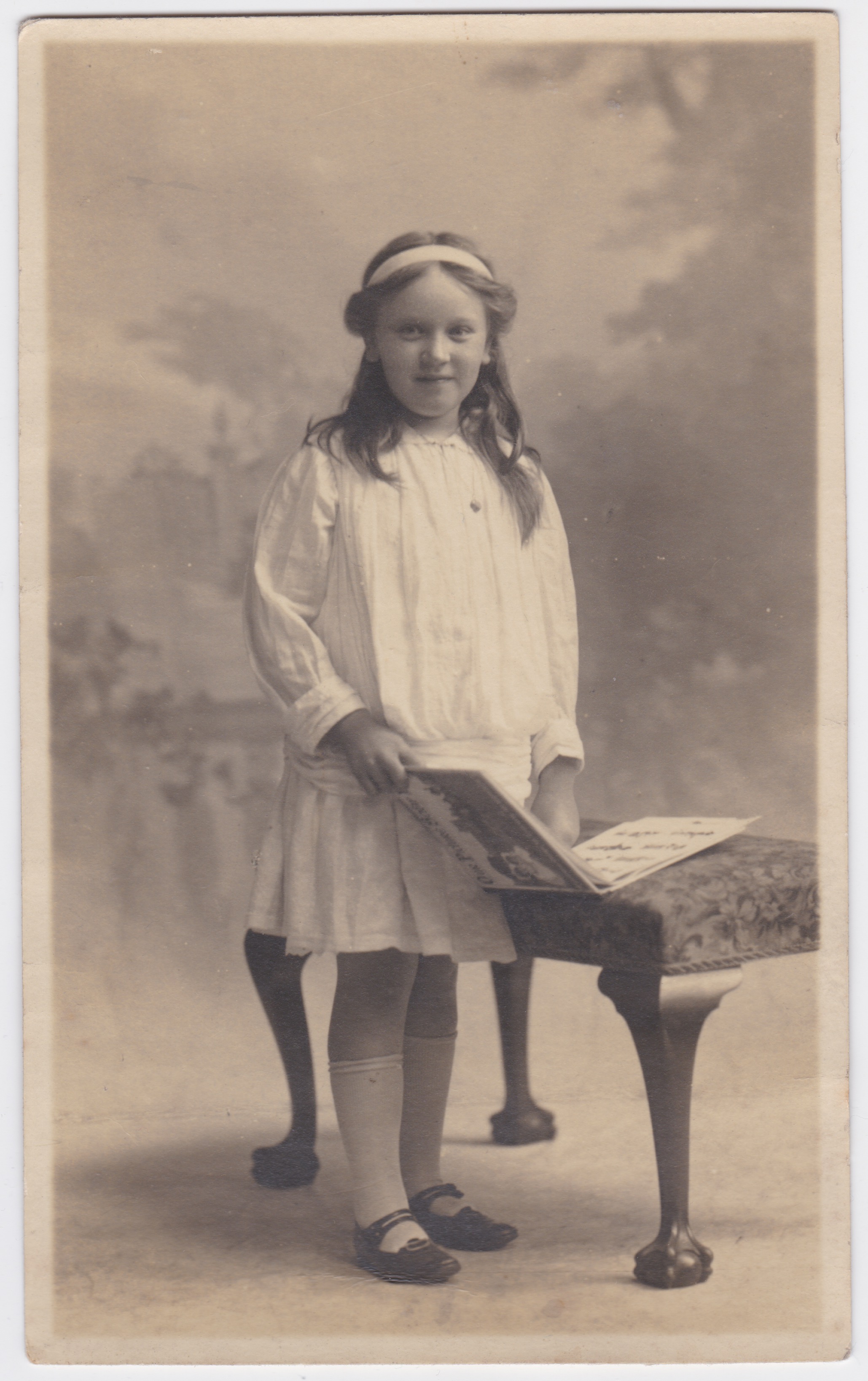 My father’s cousin “Marjory Russell (nee Stevenson)” came to light as nothing more than a labelled photograph of a girl in a shoebox in the last month or so. She was the only child of John Black Stevenson and Marianne Milne Simpson.
