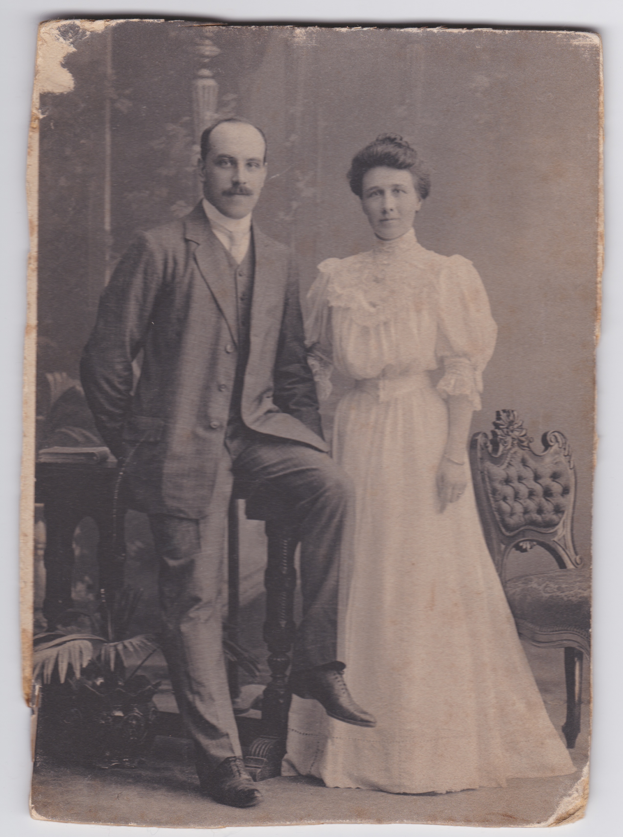 “Uncle Jack Aunt Marianne Stevenson” in a photo estimated with the help of some online help to be a wedding photograph circa 1905-1910.