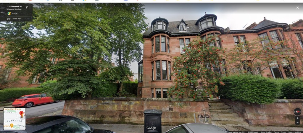 The Walker address change is confirmed by http://www.glasgowwestaddress.co.uk/Queens_Gate/6_Queens_Gate.htm). The Walkers were the first occupants, listed by GlasgowWestAddress as “Walker, A. (of J. & A. Walker, iron, steel & machinery merchants, Great Western Road Station, N.B. office, Strathcona Drive)”, from 1900-1914.