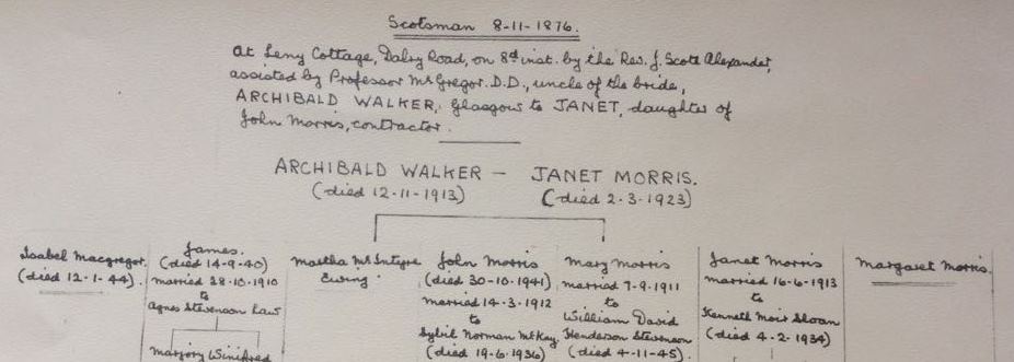 - Janet Morris (1887-?) (m.16/06/1913 Kenneth Moir Sloan, ~1877-1934)