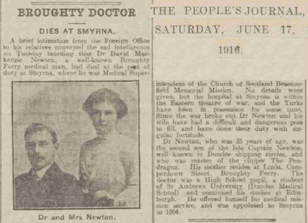 At the time of his death, Dr David McKenzie Newton had been a medical missionary for around a dozen years, and was the superintendent at Beaconsfield Memorial Hospital. It seems he also had a wider role, being identified also as “the college physician” by Smyrna’s International College in Paradise near Smyrna, an American educational institution which had been run by missionaries for 25 years.